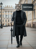 Мужской зонтик в магазине Зонтофф с серебряной ручкой - голова тигра (гальваническое покрытие). Чёрный купол из набивной ткани "в рубчик" с легким глянцевым отблеском за счет особого состава полиэстера, тефлоновая пропитка, стальные спицы и шток.