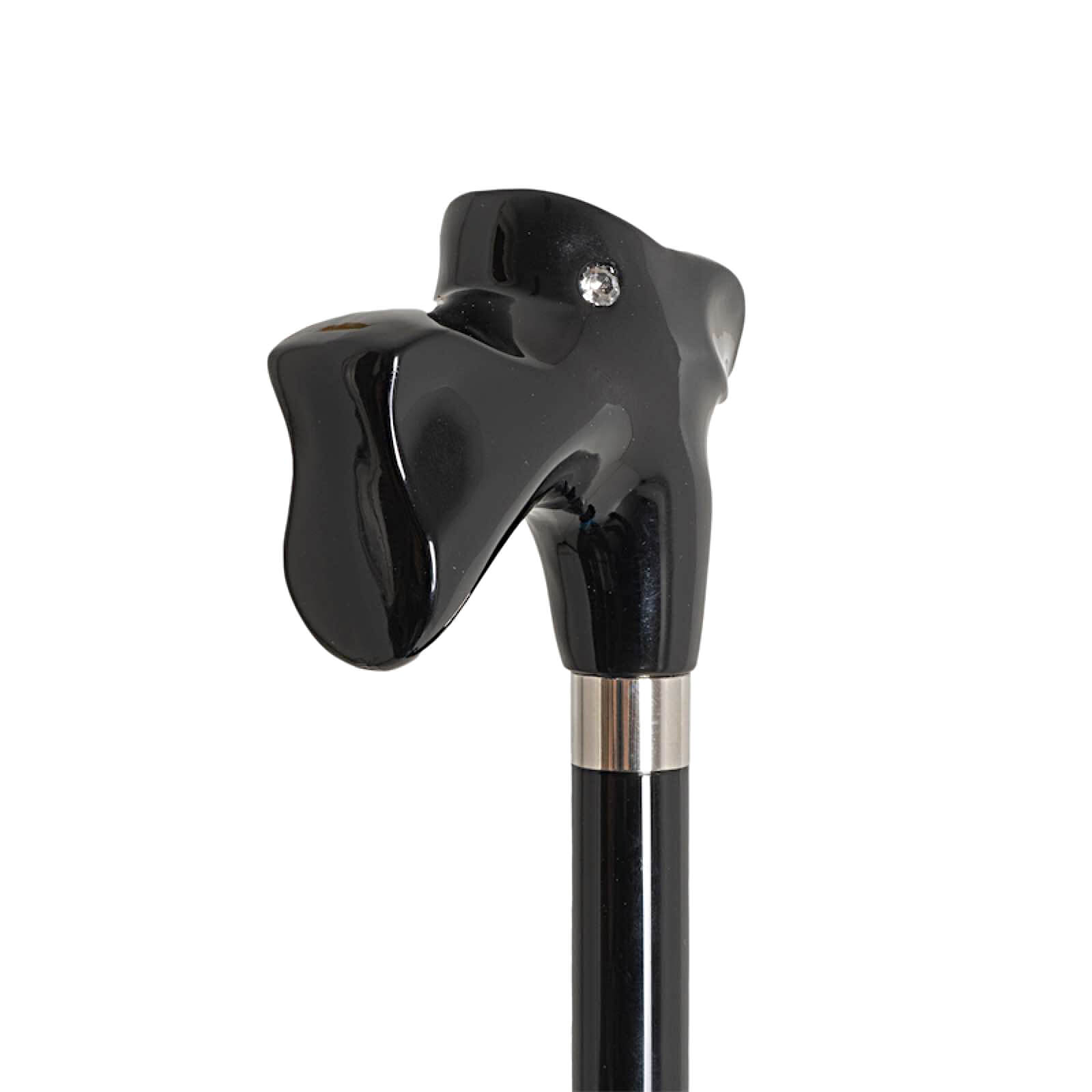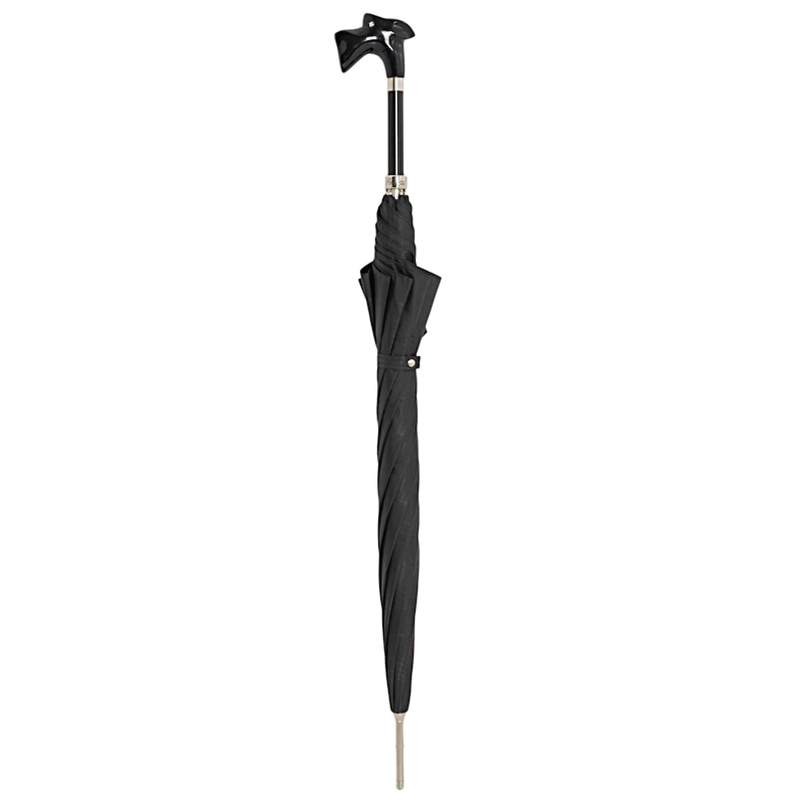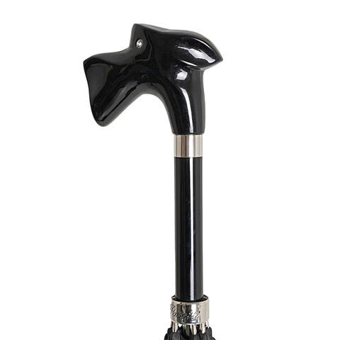 Эффектный зонт-трость с рукоятью, выполненной форме головы шнауцера, одной из самых преданных и интеллектуальных пород. Этот элемент ручной работы украшен чёрной ювелирной эмалью.