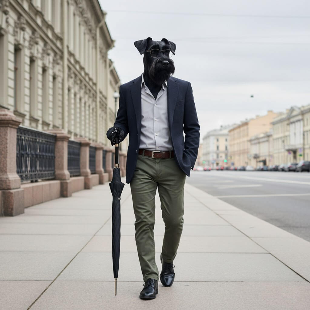 Зонт со шнауцером — это не просто защита от непогоды, а отражение характера: умного, преданного, уверенного и безупречно стильного.
