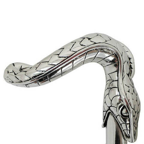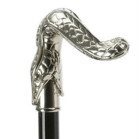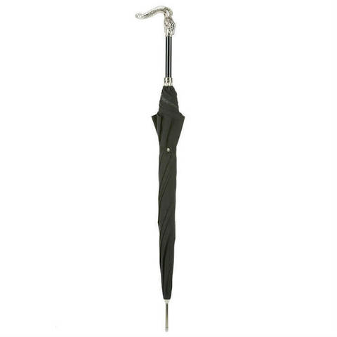 Мужской зонт-трость с серебряной змеёй на рукоятке. Великолепный дизайн, ручная работа итальянских мастеров. Серебряное (натур.) гальваническое покрытие на рукоятке, черная ткань с особым плетением напоминающим чешую.