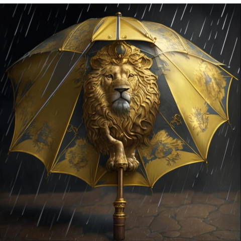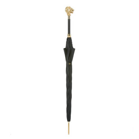 Премиальный зонтЗолотой Лев в магазине Зонтофф. Ручная работа, купол изготовлен из дорогой черной ткани с изящным набивным рисунком. Роскошная дизайнерская ручка в форме головы льва изготовленной из полимерных материалов с покрытием натурального золота. Кажется что слышен мощный рык царя зверей. Спицы дополнительно фиксируются золотистым кольцом с гравировкой "Pasotti". Зонт для настоящих охотников и сильных мужчин.