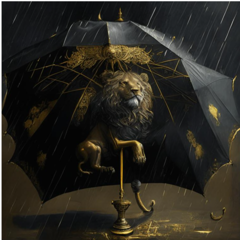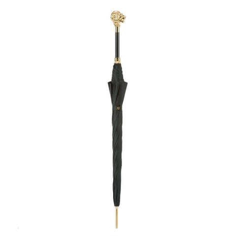 Премиальный зонт из дизайнерской коллекции Pasotti: Золотой Лев в магазине Зонтофф. Ручная работа, купол изготовлен из дорогой черной ткани с изящным набивным рисунком.